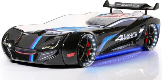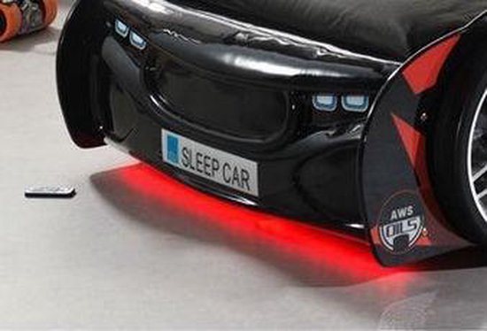 Dit autobed heeft het allemaal; verlichting in de velgen, bumpers en onder de auto, ook kan de auto gave geluiden maken. Het sound pakket heeft het Knight rider geluid, auto racegeluid en claxon. Het geluid en de verlichting kan uw kind bedienen met de meegeleverde afstandbediening met sleutelhanger.